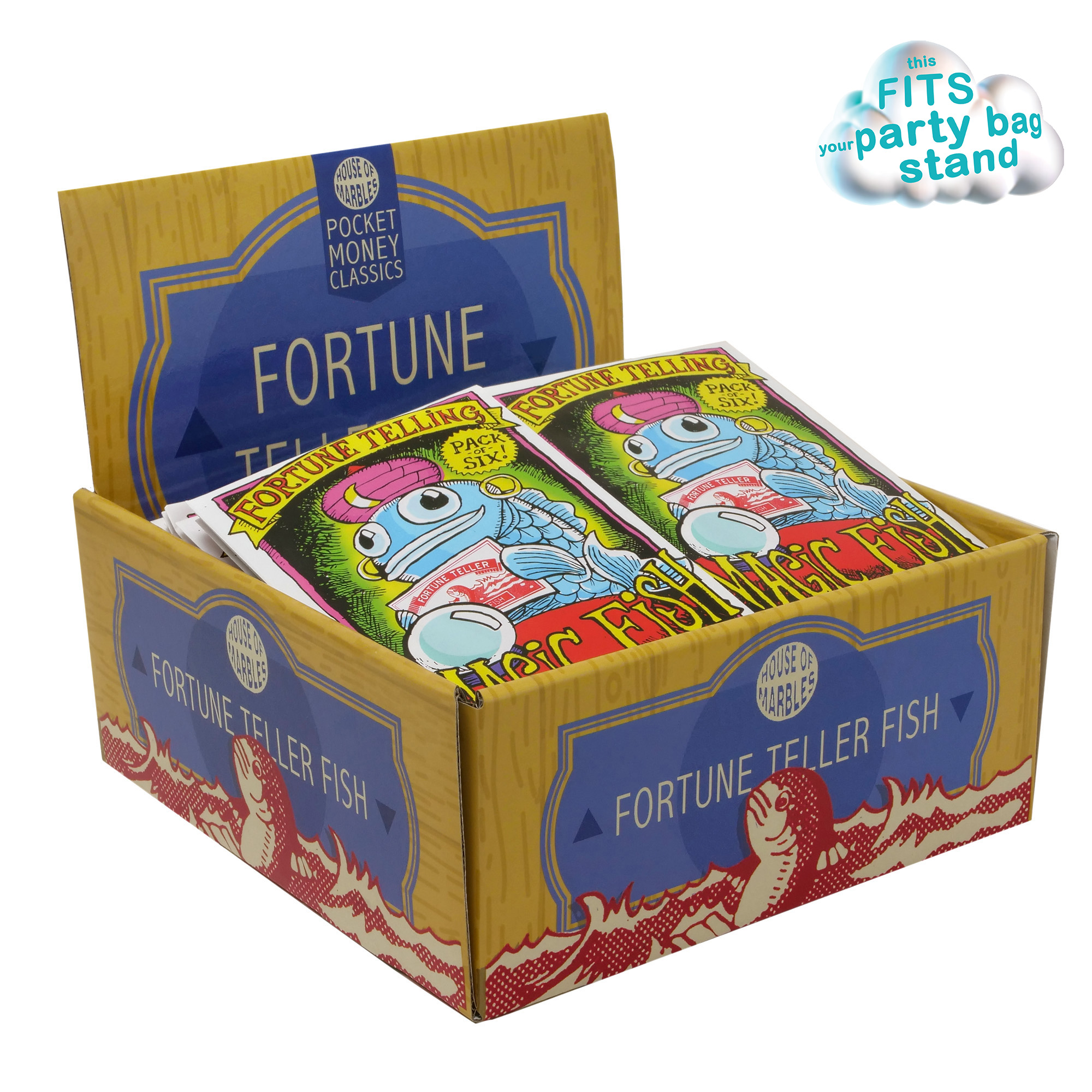 Part of range of inexpensive toys, games and novelties for children’s party gifts and fun for children at pocket money prices. A set of six fortune telling fish. Place the predictive plaice in the palm of your hand – it’s reaction will tell you your fortune!